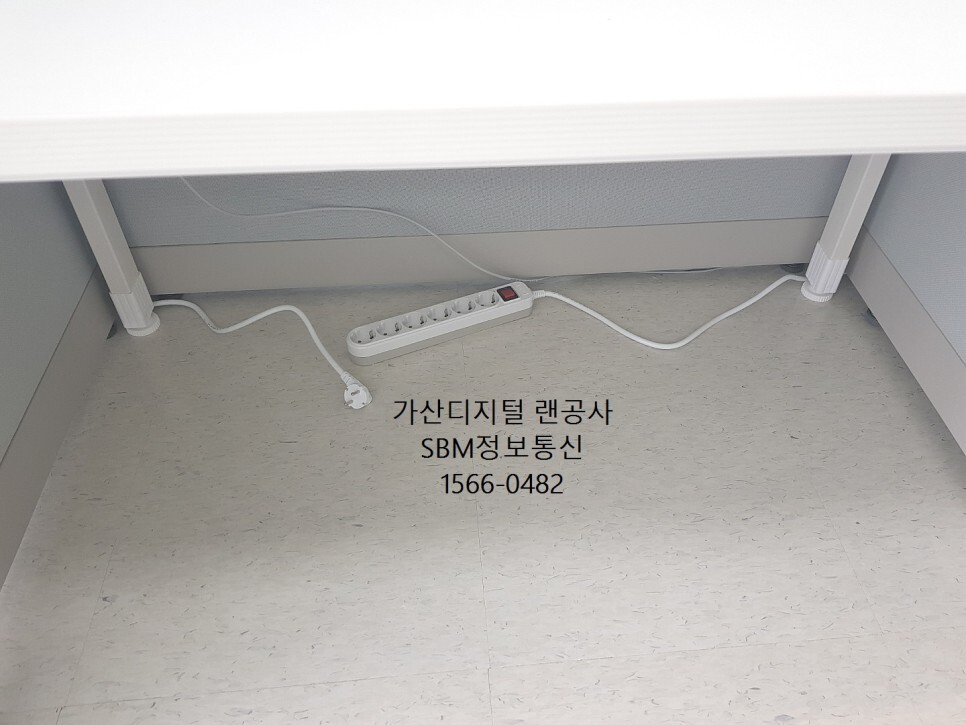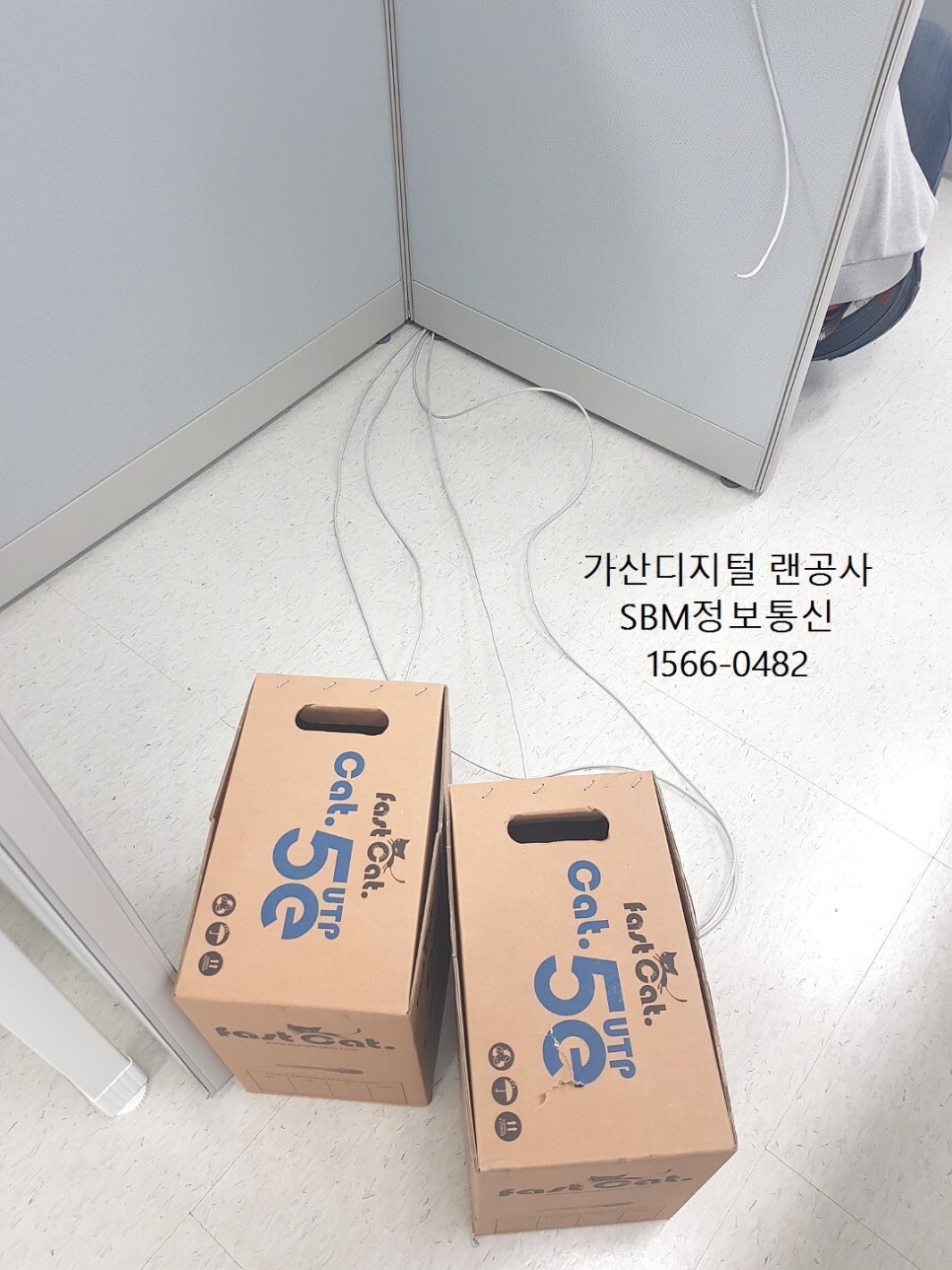 이제 사무실 각 자리에 있는 책상 밑으로 랜선들을 포설하는 모습니다