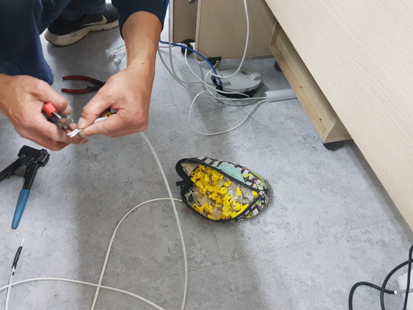 랜선을 열심히 만들고 바닥 시스템박스에 연결을 합니다.
