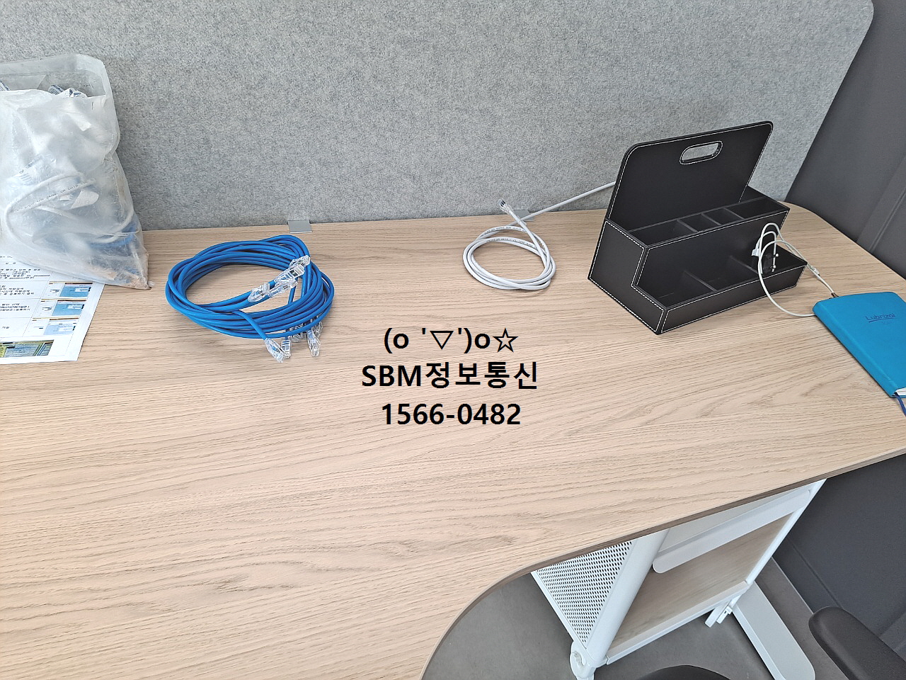 2. 바닥에 포설 된 랜선을 책상 위로 올리기