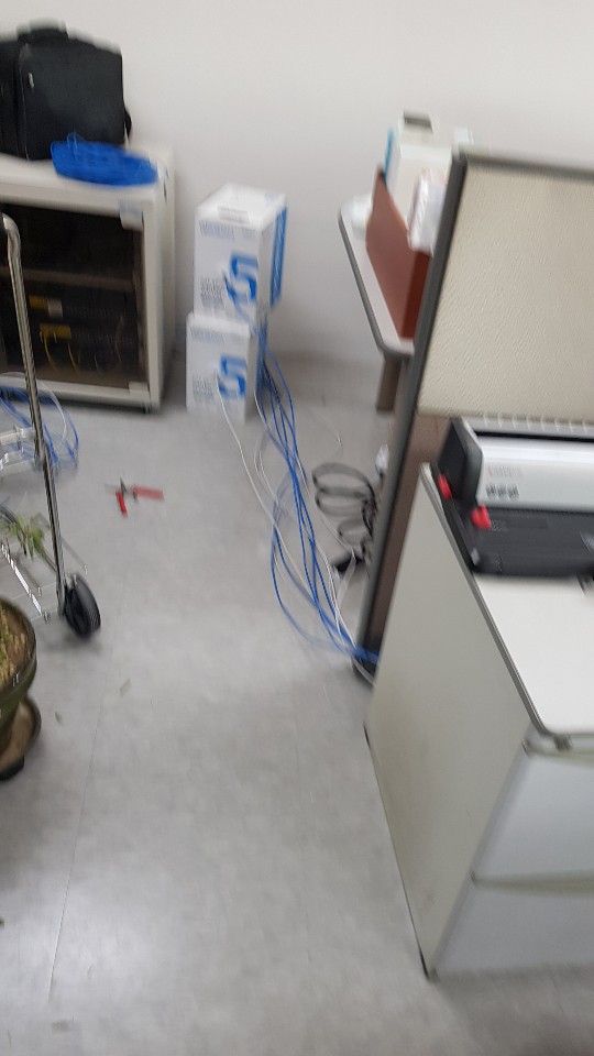 사무실 바닥과 책상 위까지 랜선 포설이 완료되고,