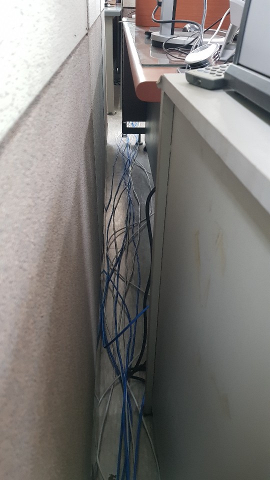 사진은 벽과 책상사이에 랜선들이 포설된 사진인데요..