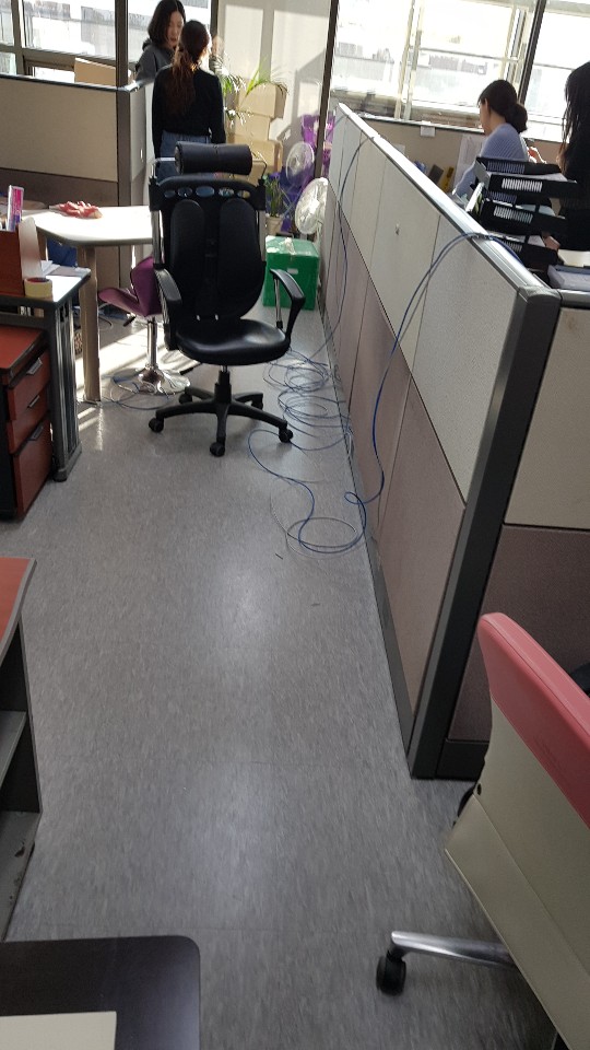 사무실 이사 직후 직원분들이 바쁘게 움직이시고, 저희도 랜공사 자제 등을 옮기느라