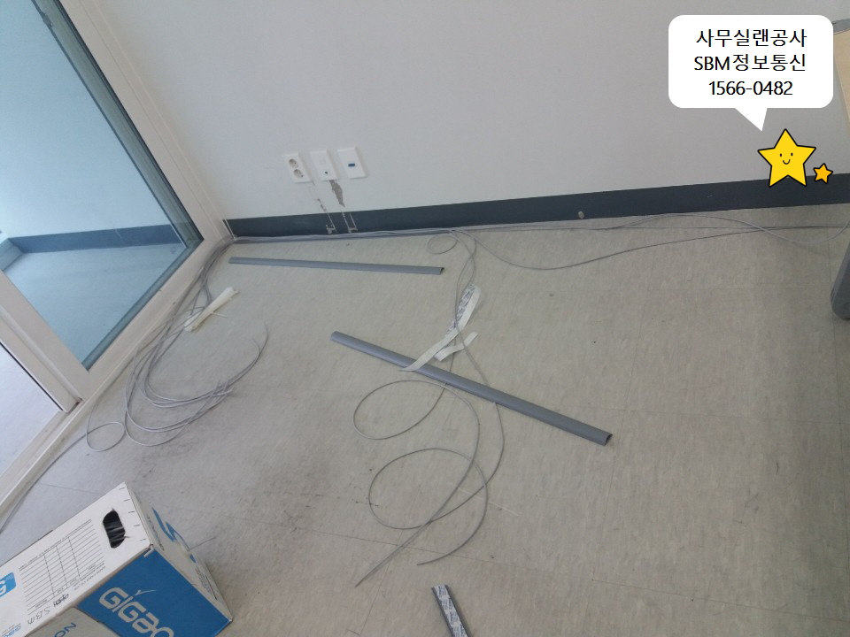 그쪽을 기준으로 유무선공유기를 설치하고 바닥으로 랜선들을 포설하기 시작했습니다~