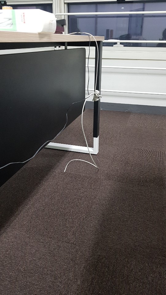 이제 바닥에 있는 랜선들을 책상 위로 올려서 PC와 전화기에 연결하기 수월하게 해 드렸습니다.
