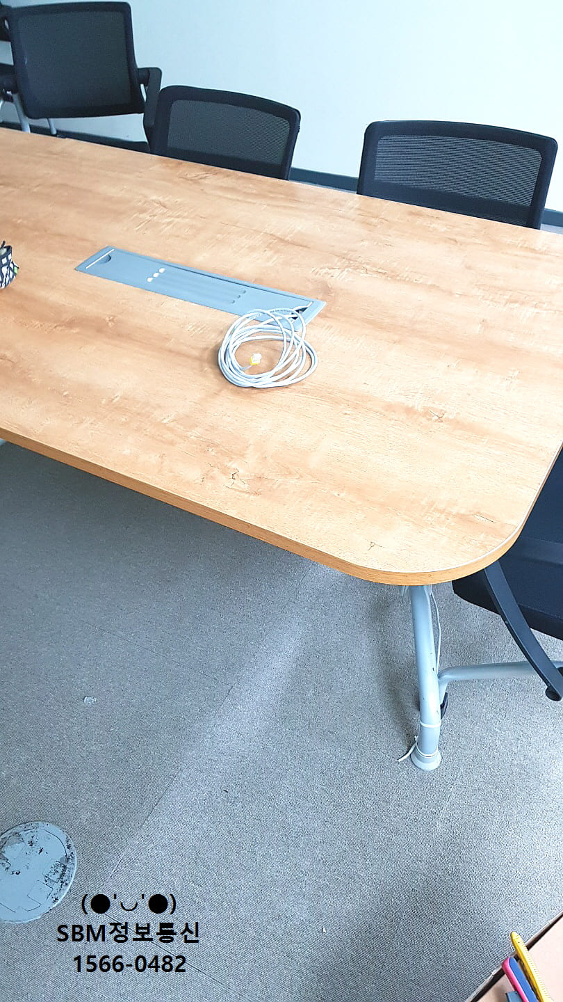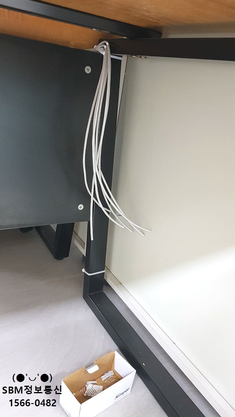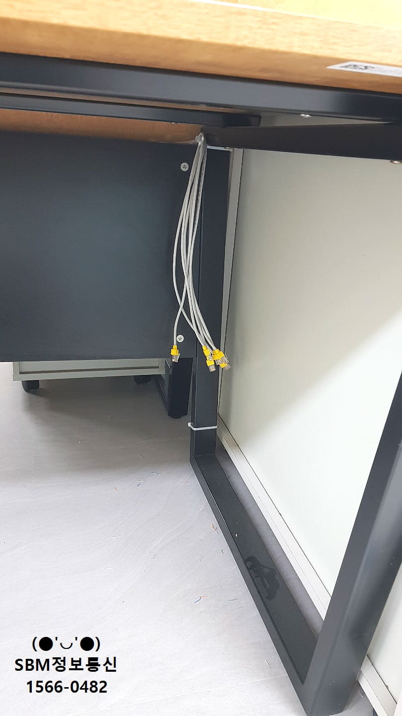 바닥에서 부터 올라온 랜선들을 책상 위로 올려서 컴퓨터, 인터넷전화를 연결 할 수 있도록 작업을 진행했습니다.