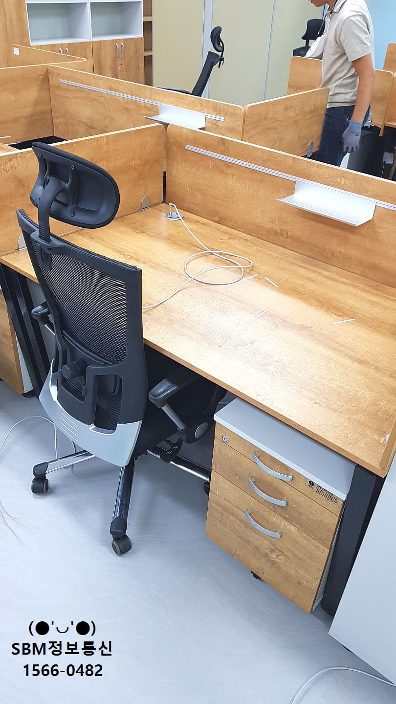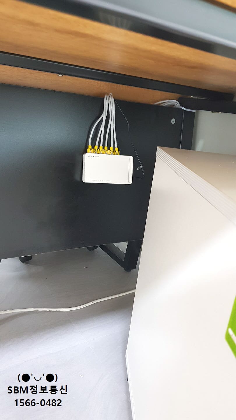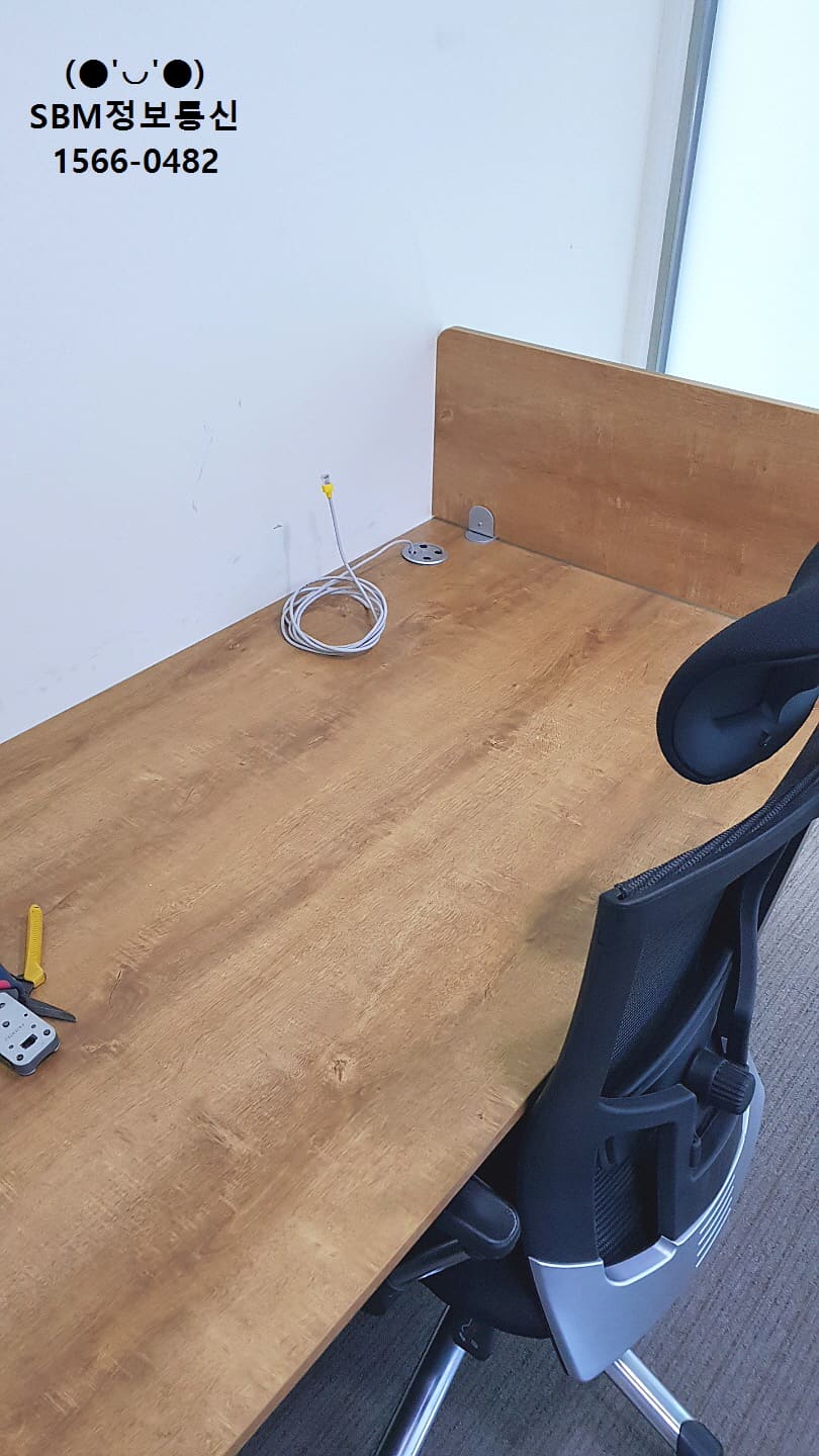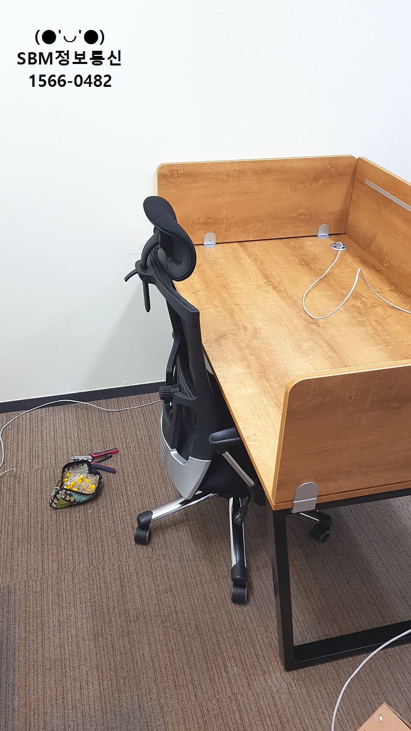 바닥에서 부터 올라온 랜선들을 책상 위로 올려서 컴퓨터, 인터넷전화를 연결 할 수 있도록 작업을 진행했습니다.
