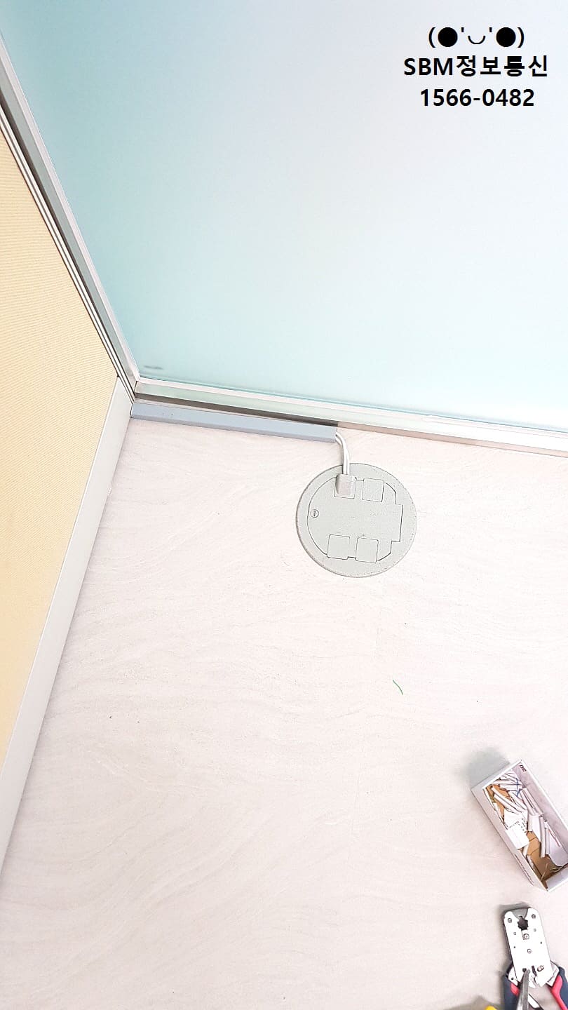 세대단자함에서 작업을 마친 이후 바닥에 있는 시스템박스(통신,전기) 에서 책상으로 랜선을 연결했습니다.