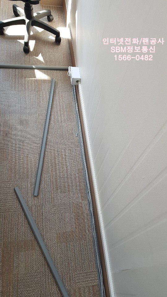 이후 몰딩으로 랜선을 보호하고 바닥 랜선 작업을 마칩니다.