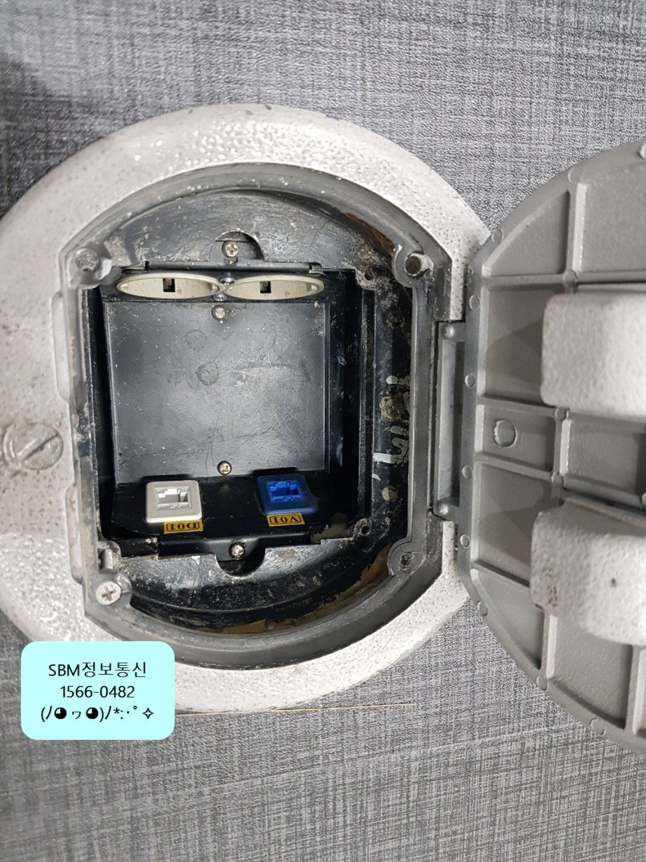 이제 바닥에 있는 시스템박스(통신포트)를 통해서 인터넷 랜선을 연결하는 작업을 진행했습니다!