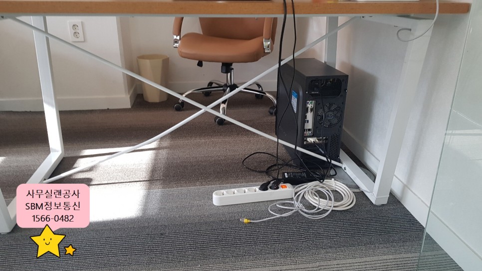 팩스 선도 동선에 방해되지 않게 바닥으로 깔끔하게 숨겨서 포설해드렸구요~