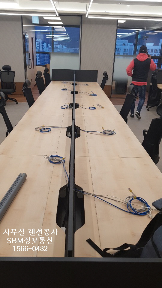 이제 마지막으로 임원분들의 책상 위로 랜선 포설하는 중입니다.