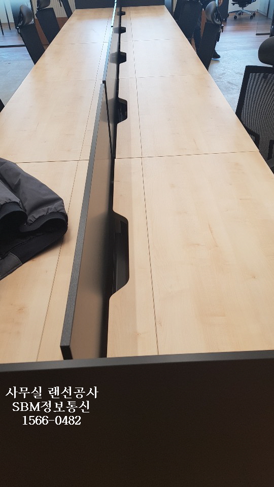 사무실 책상이 길쭉길쭉하게 뻗어 있어서 저희도 랜선을 길게 뽑고