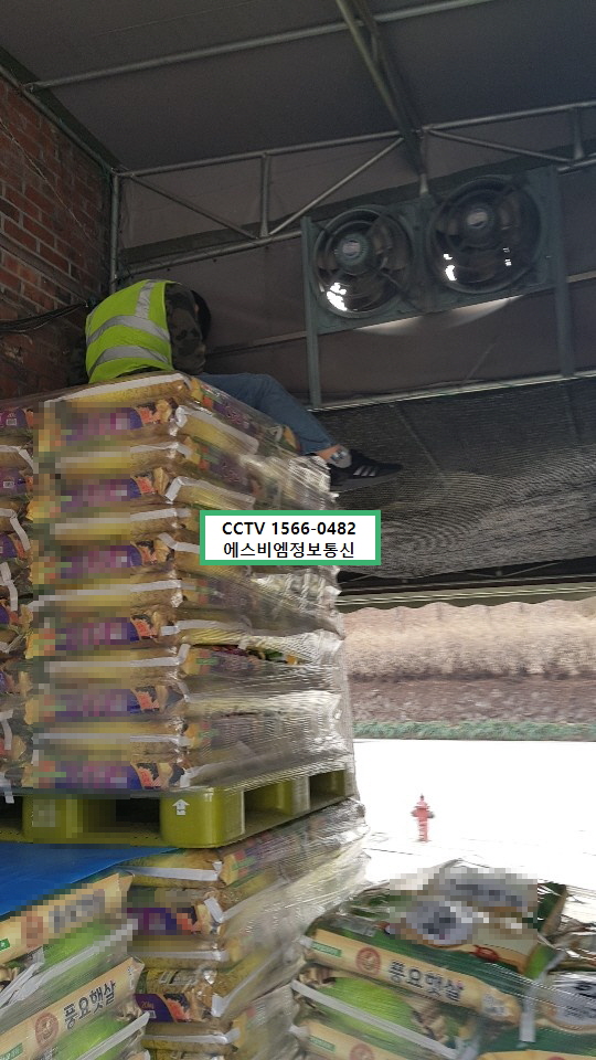 사다리가 닿지 않는 곳은 불가피하게 쌀 포대 위로도 올라가서 CCTV철거 작업을 진행했습니다.