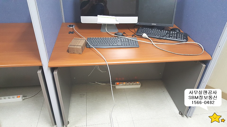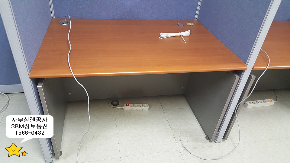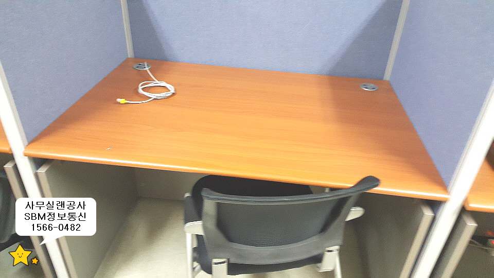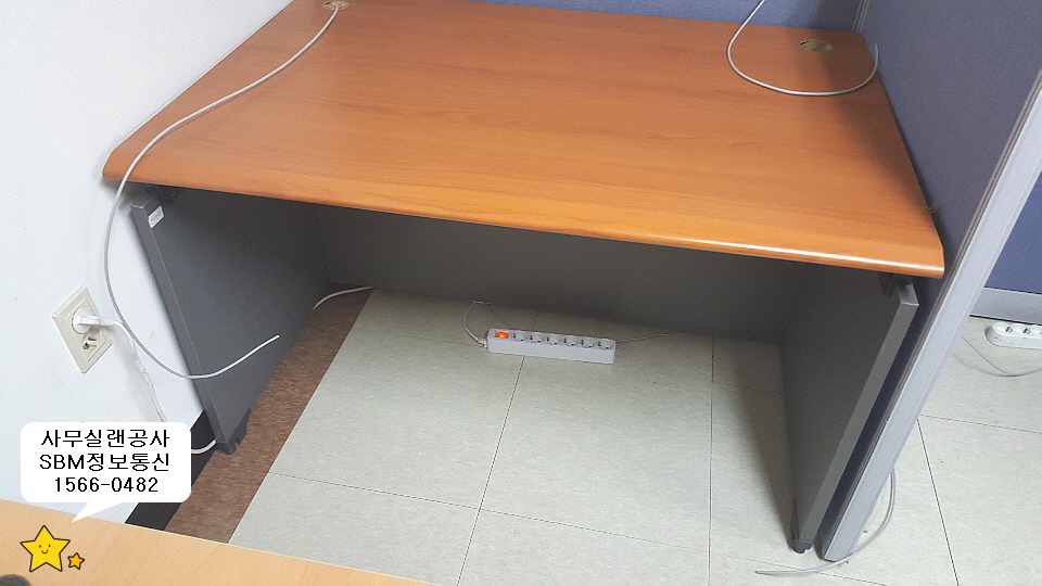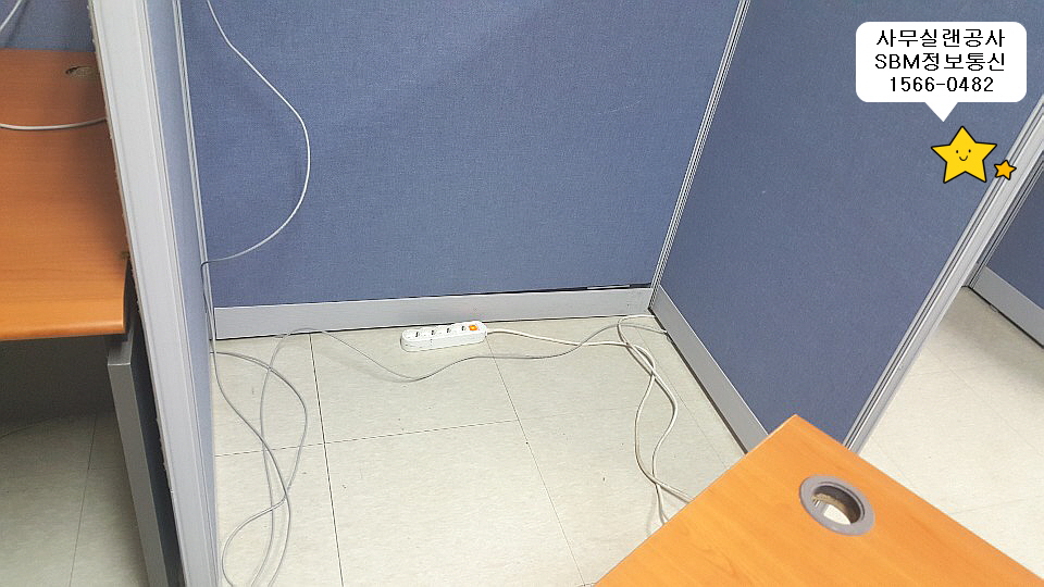 파티션과 책상 밑으로 랜선을 포설해드렸습니다~