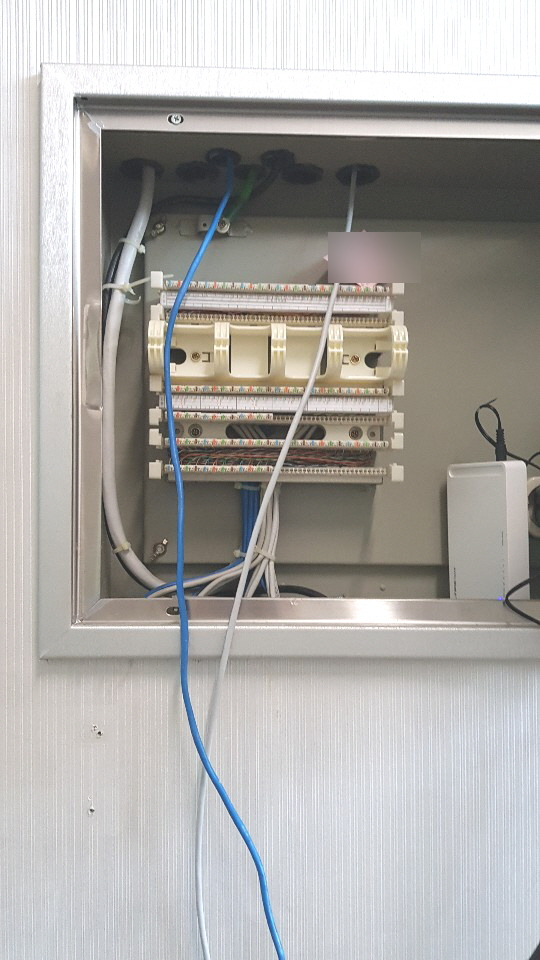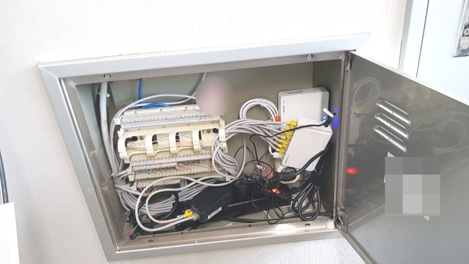 오른쪽 사진은 공유기, 허브, 랜선으로 풍성해진 단자함으로 변한 모습니다~