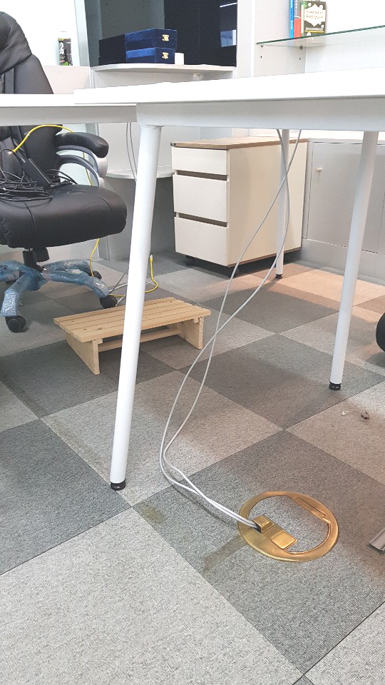여기 사진에서 보는 바닥 파트도 시스템박스에서 책상에 있는 허브를 연결하기 위해