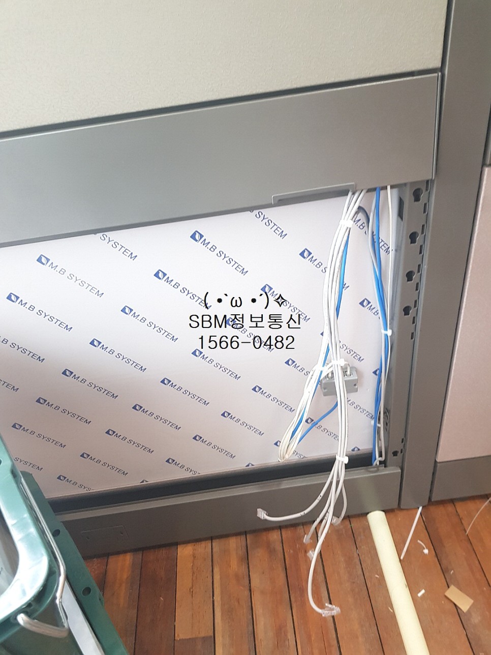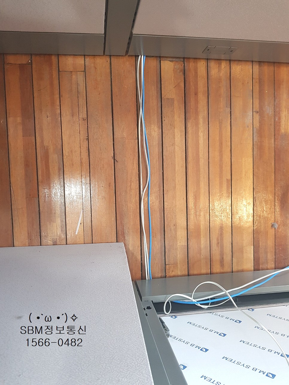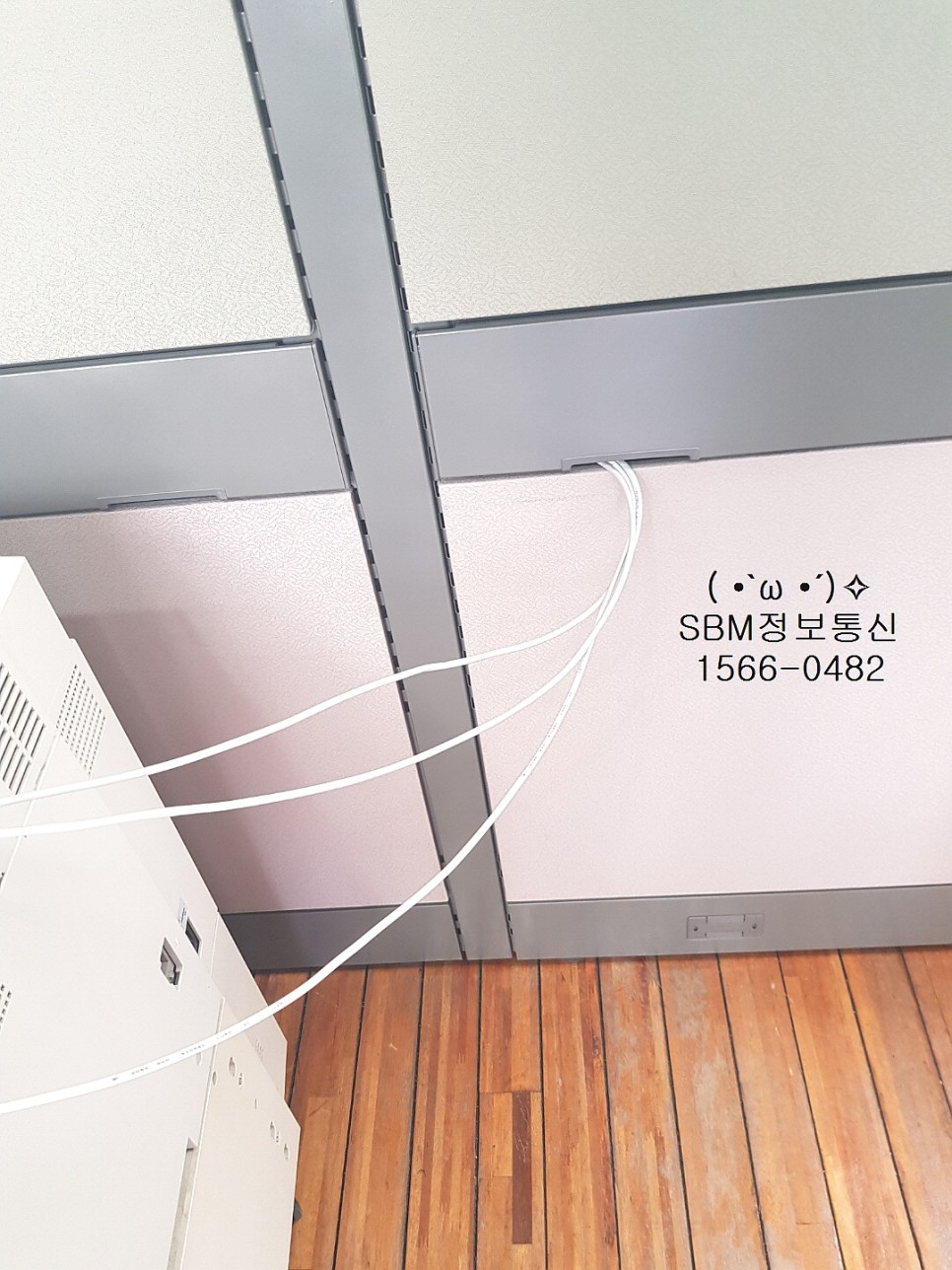 바닥은 나무로 되어있었고, 파티션은 요즘 유행하는 블럭파티션이라 랜선을 파티션에 인입하면서 작업을 진행했습니다~