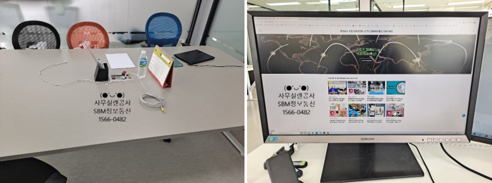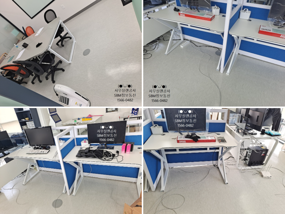 각 책상마다 미리 모니터와 컴퓨터가 배치되어 있어서 랜선 작업을 완료 후 바로 인터넷가능 유무를 체크 할 수 있었습니다.
