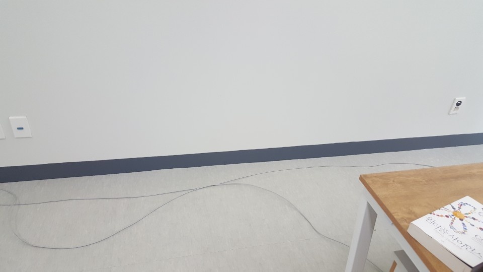 랜선을 포설하고 깔끔하게 몰딩을 씌워서 마무리한 사진입니다.