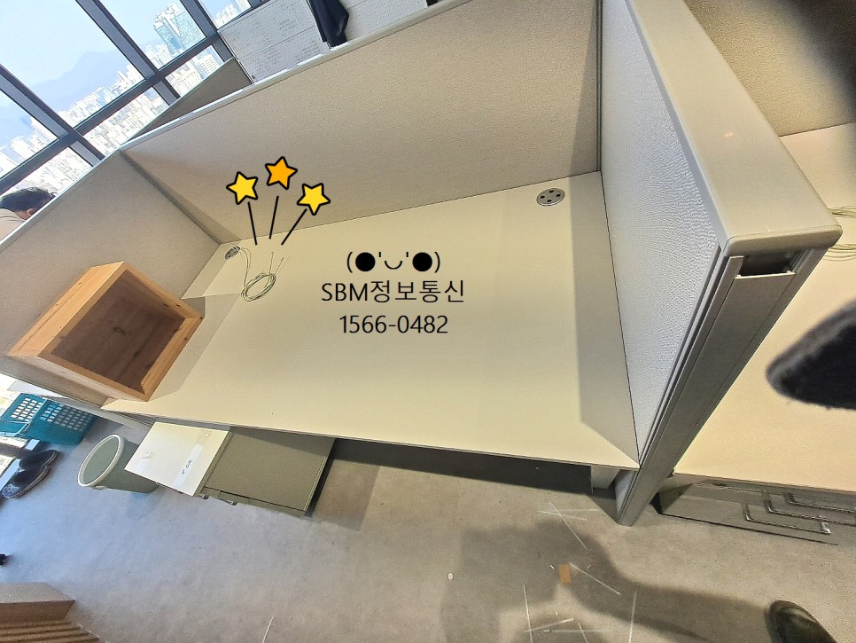 책상 위에 랜선이 올라온 모습니다. 이제 인터넷전화 또는 컴퓨터를 연결하면 바로 업무가 가능하게 만들어 드렸습니다 :)