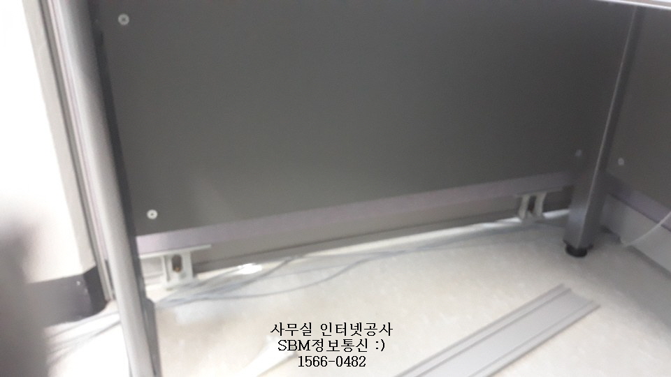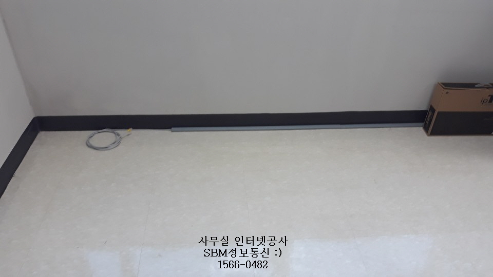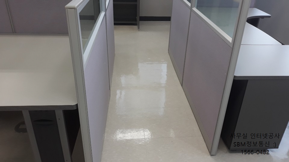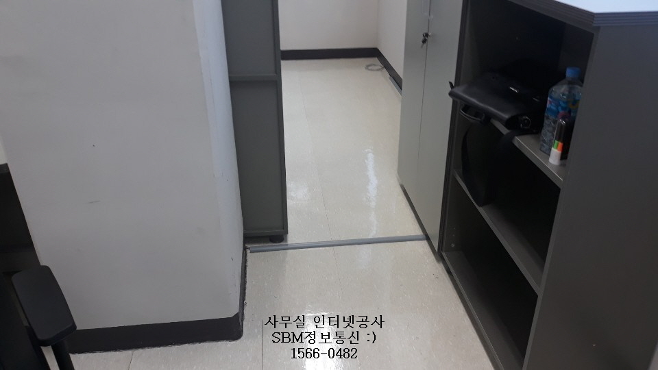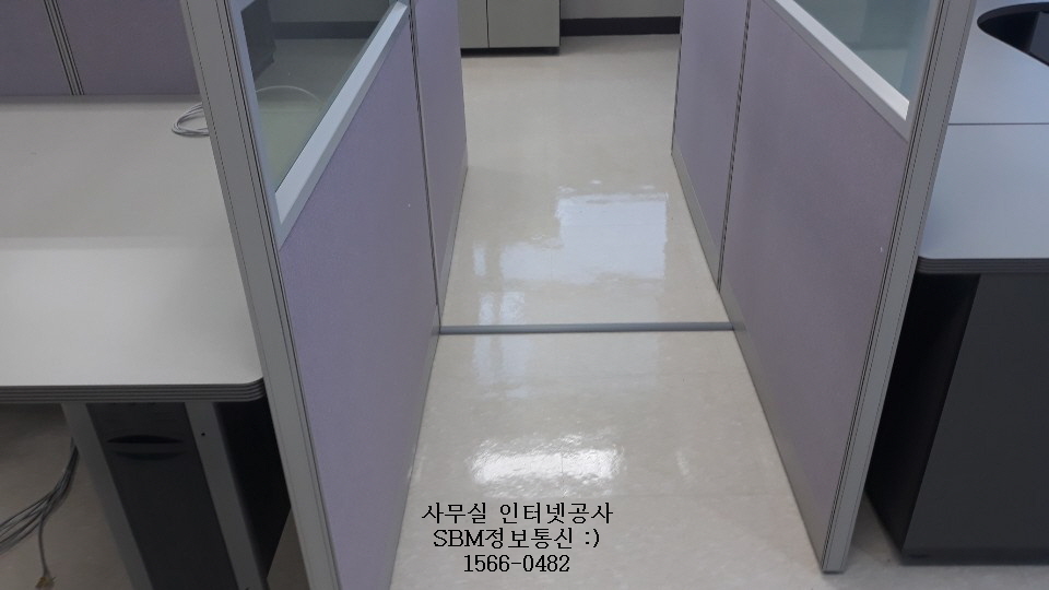 복도 파티션 사이에도 금세 랜선이 깔리고 몰딩 처리한 모습니다.