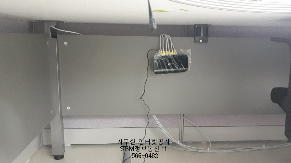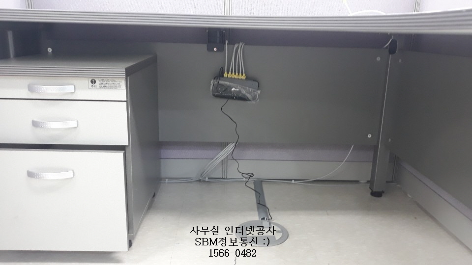사무실 각 중심부에 위치한 책상들 아래로 각각 허브를 설치하고 랜선들을 연결했습니다.