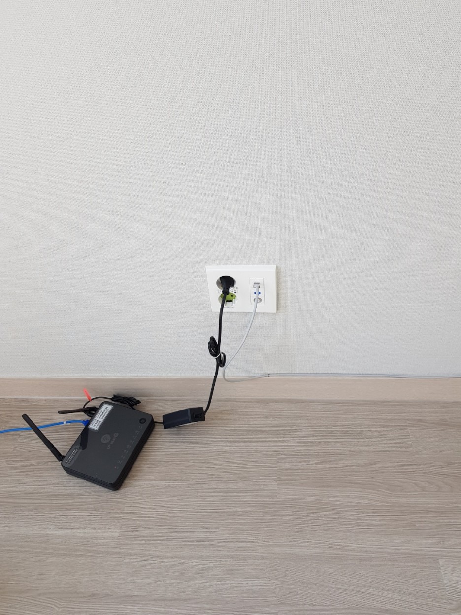 랜선을 걸레받이 몰딩 위쪽으로 보기 좋게 포설하고
