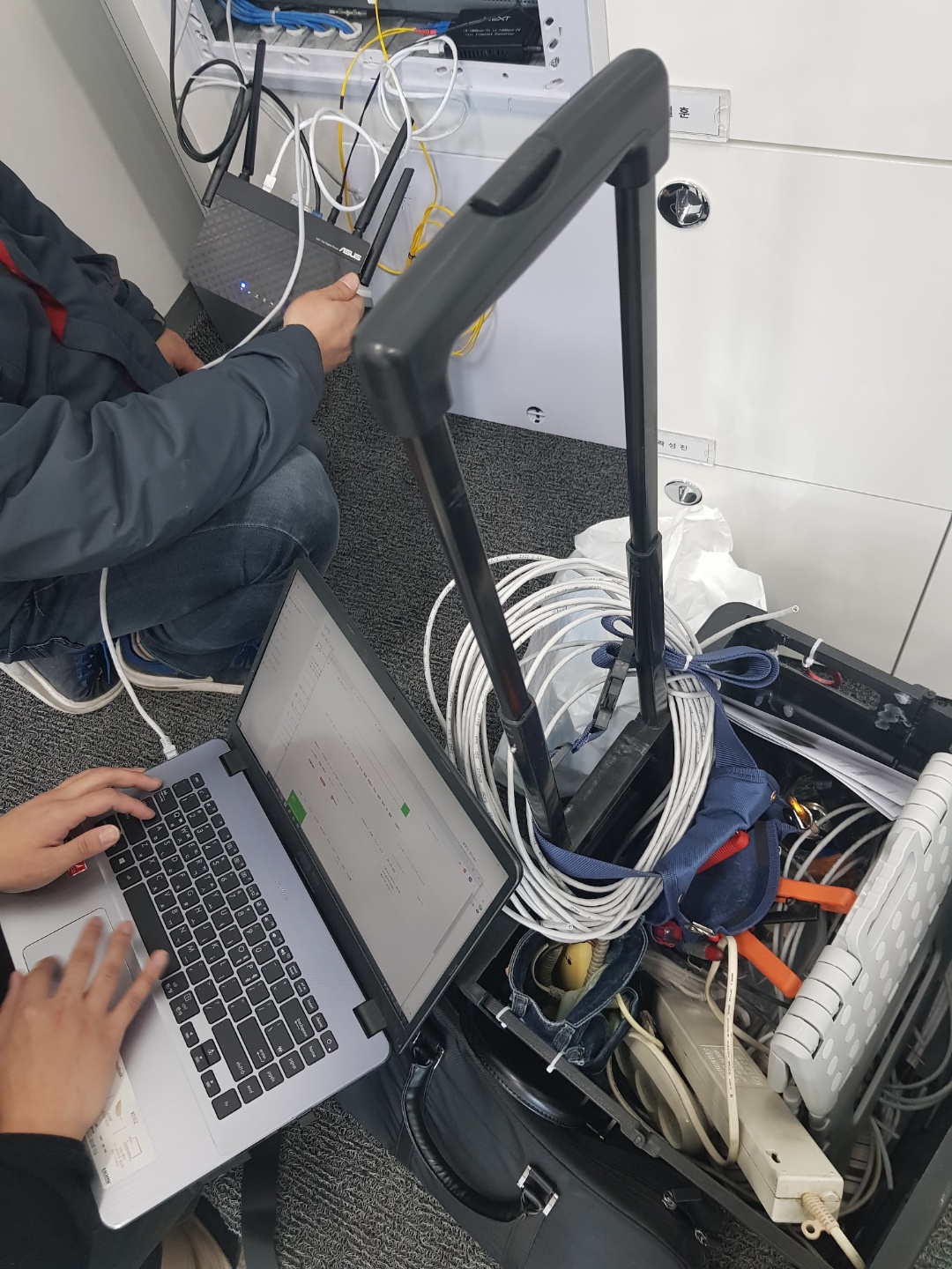 신호 체크 및 공유기 셋팅을 하고 있는 모습니다.
