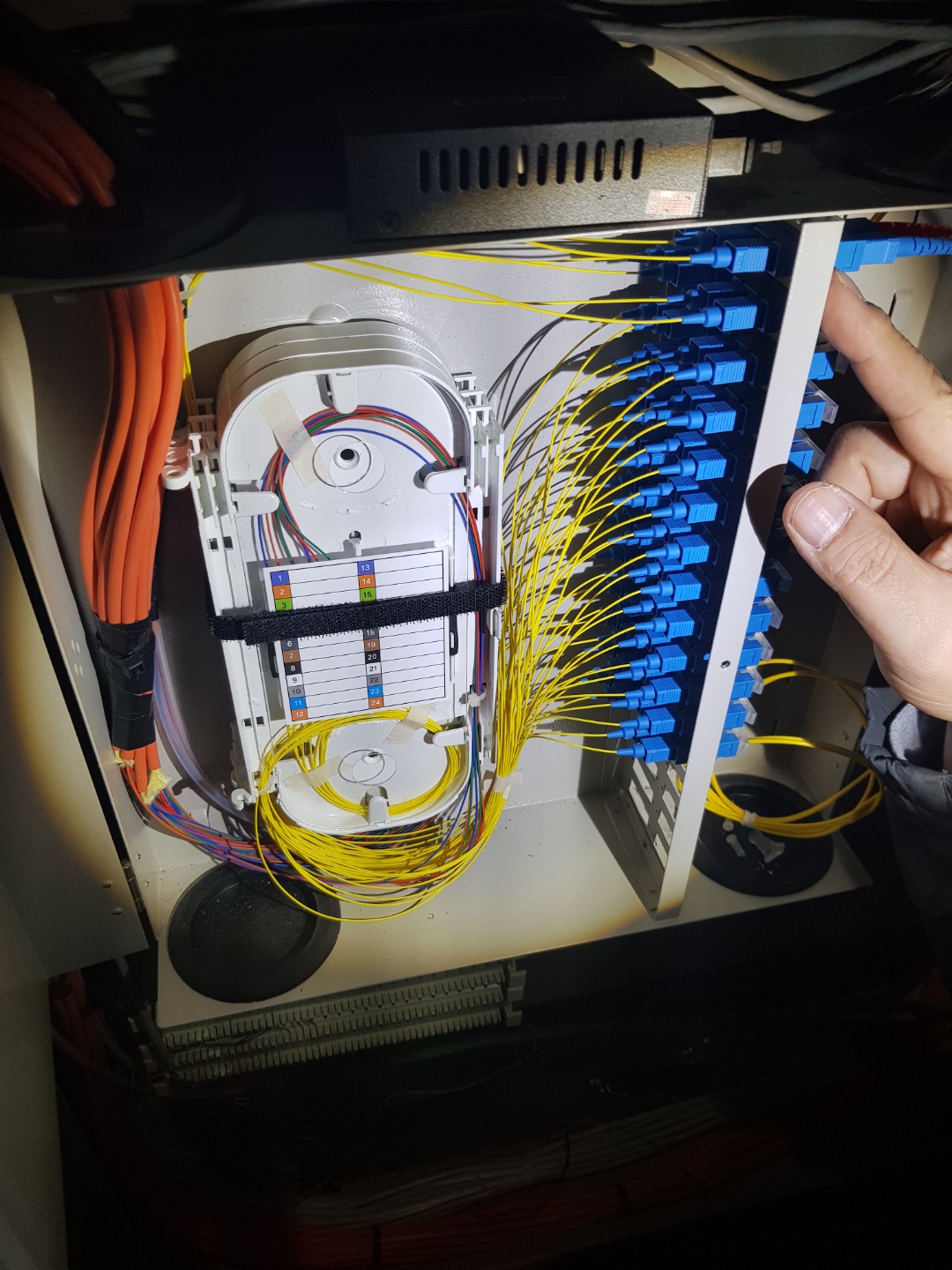 1층 통신실에서 광케이블을 연결하고 건물 TPS실을 거쳐 해당 호실까지 라인을 끌었습니다.